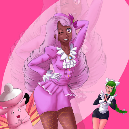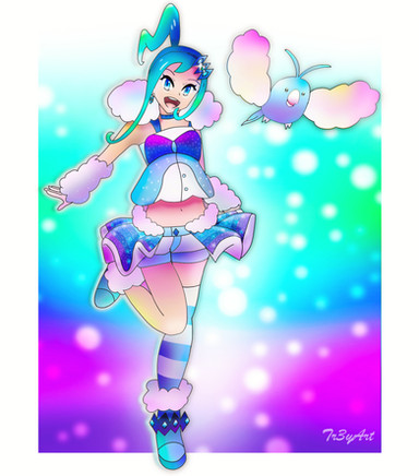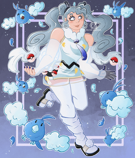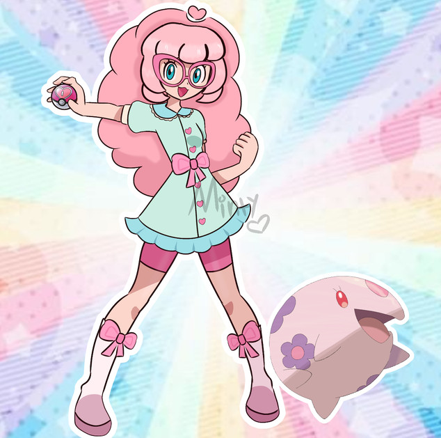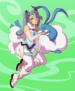 #fanart #pokemon #nintendo #pokemontrainer #digitalart #bluehair #hatsune #hoothoot #jumpluff #miku #pink #round #shiny #smile #thighhighs #twintails #vocaloid #coveredeye #hatsunemiku #tsuinte