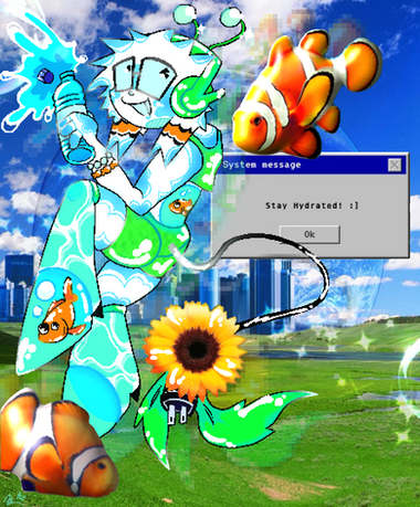 #digitalart #fanart #originalcharacter #rainbow #windows #aero #bright #flowers #gift #glasses #glitch #nostalgia #oc #y2k #frutiger #computer #vtuber #scege #frutigeraero #rinavermilion