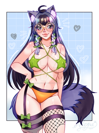 #originalcharacter #digitalart #digitalpainting #blush #choker #fishnets #glasses #green #meganekko #oc #stpatricksday #thighs #thong #tongue #tummy #rinavermilion