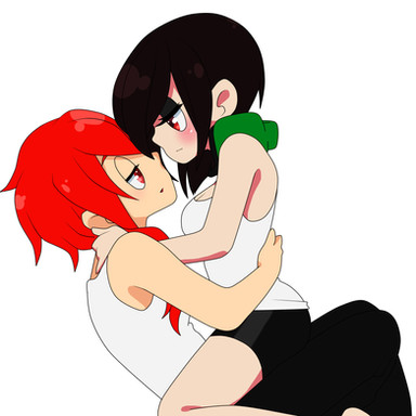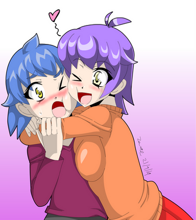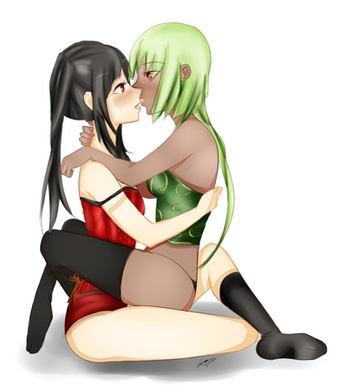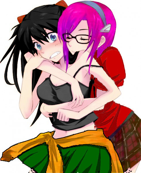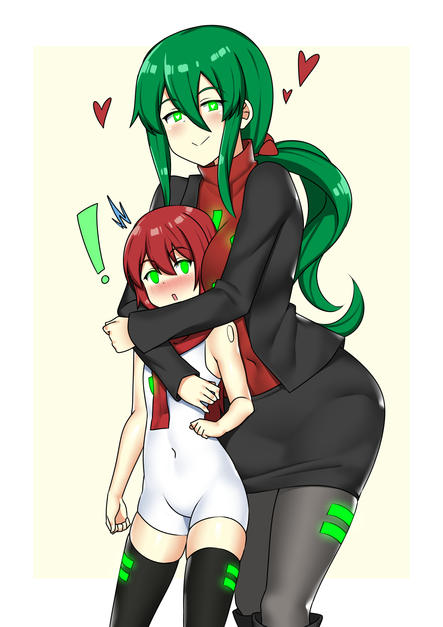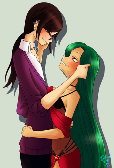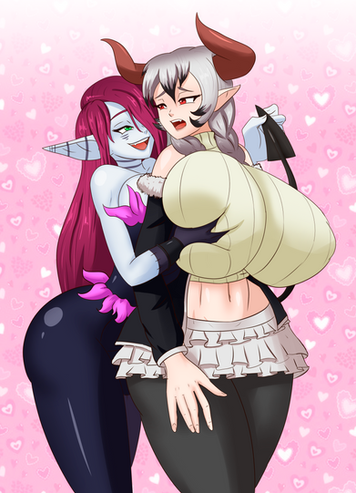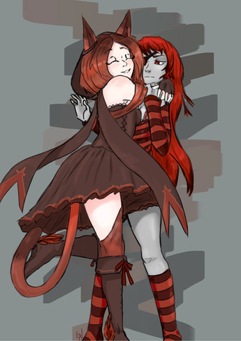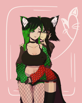 #commission #greenhair #hug #makeup #nightgown #pinkhair #skull #twogirls #yuri