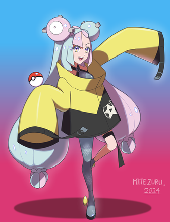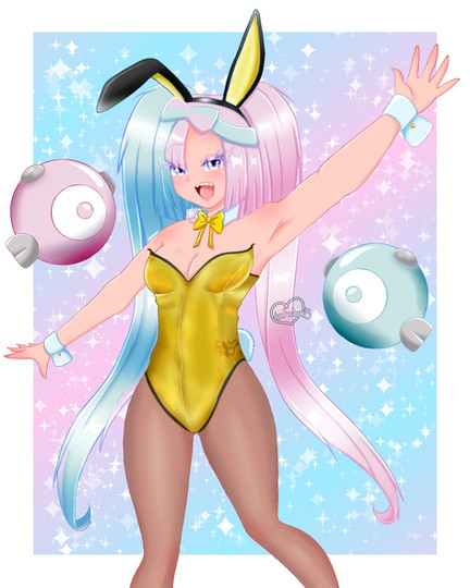 #blue #bunnygirl #commission #gloves #iono #magnemite #minun #pink #plusle #pokemon #red #tights #trainer