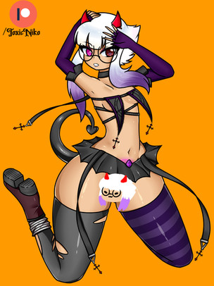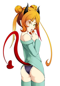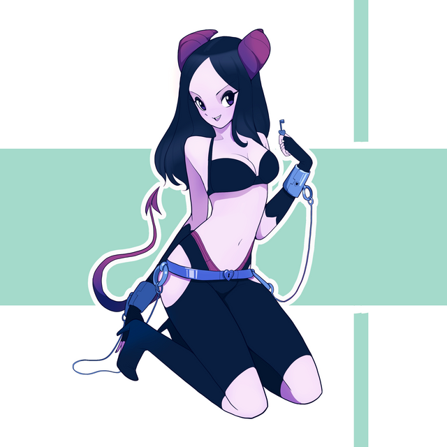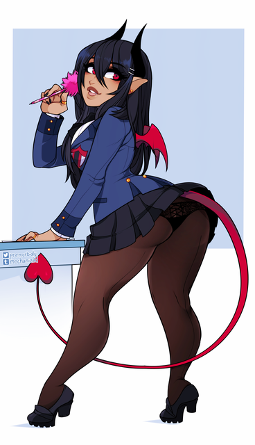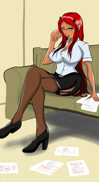 #bluehair #garterbelt #hazeleyes #horns #lillian #monstergirl #officelady #stockings #succubus #tail #thighhighs #uniform