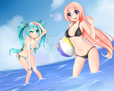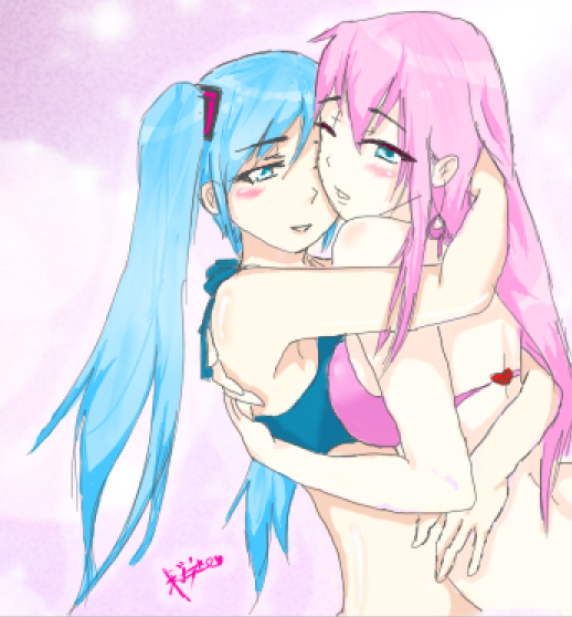 #03 #bikini #blueeyes #blush #headset #luka #pinkhair #popsicle #vocaloid #megurineluka