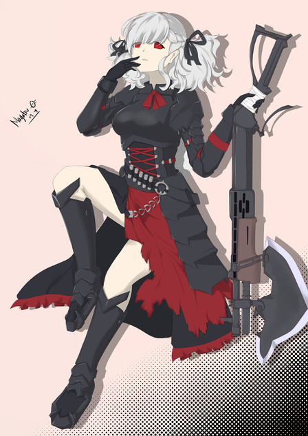 #boots #brown #commission #garterbelt #gloves #marine #nails #redeyes #stocking #tail #whitehair #kemonomimi