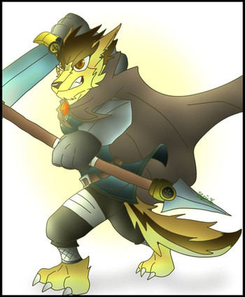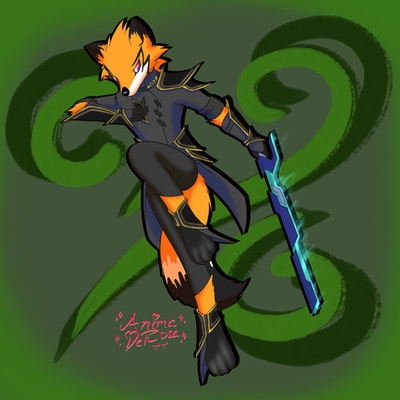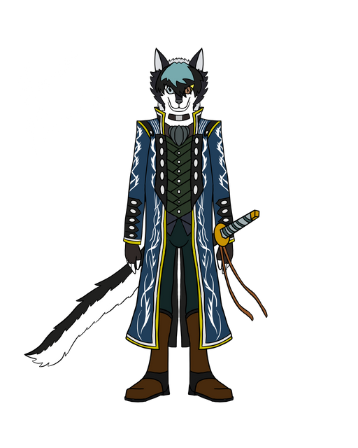 #anthro #blue #commission #flame #furry #swordsman #tail #wolf #michaelskylion
