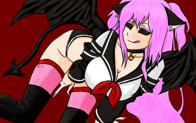 #bluehair #bright #choker #fanart #happybirthday #latex #monstergirl #succubus #thighs #twintails #wings #hatsunemiku #tsuinte