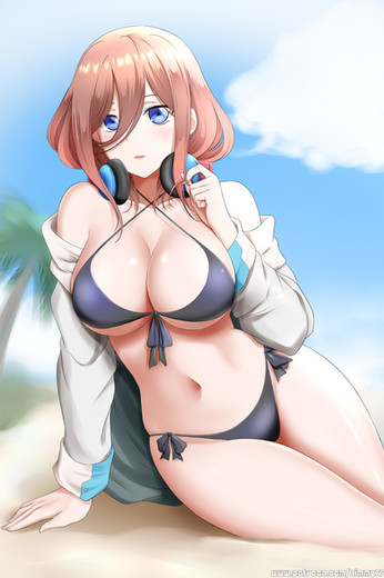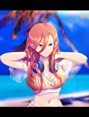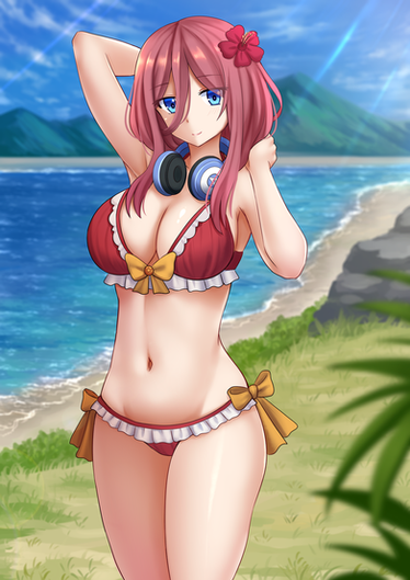 #bikini #blush #miku #nakano #shy #nakanomiku #headphones #gotoubunnohanayome #gotoubun_no_hanayome #quintessentialquintuplets