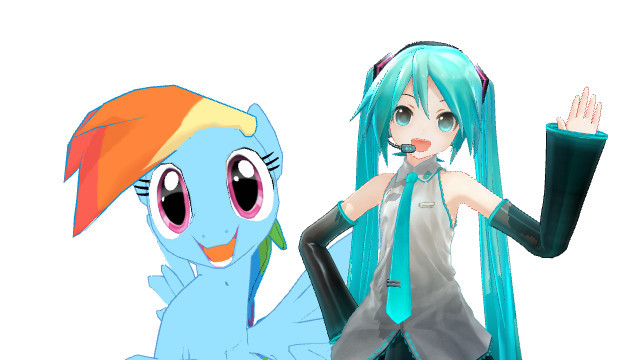 Interesting hair swap, wonder if Miku can now fly and Rainbow sing.