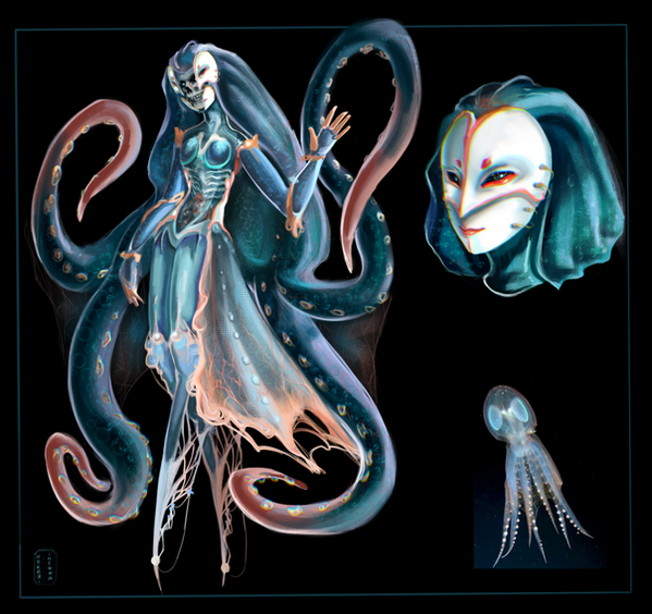 Lastly, something she doesn't talk about much. One of the things she yearns for the most is being a mother. She lays eggs every 50 years or so, but she keeps them a bit hidden because she is kind of shy about them not being fertilized by anyone. Sailors and pirates would oftentimes steal them from her lair, call them 'giant pearls', and do whatever humans do with them, so since then she's laid them deeper in the trenches. To her, the eggs are tiny though. She is in mourning for a month or so as her eggs wither up and become useless.