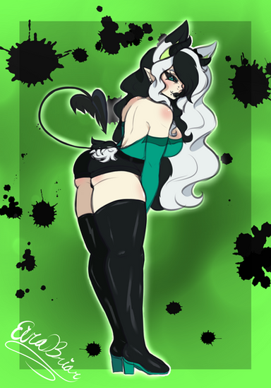 #originalcharacter #demongirl #eyepatch #horns #monstergirl #neon #oc #squatting #succubus #thighs #ahoge #sideboob #vtuber #viperlilium