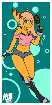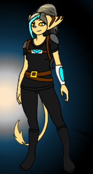 #originalcharacter #space #digitalart #abs #bandages #bluehair #eyepatch #lombax #nine #oc #ratchetandclank #skirt #thighs #wrench #twindrills