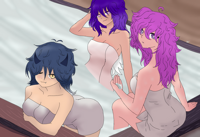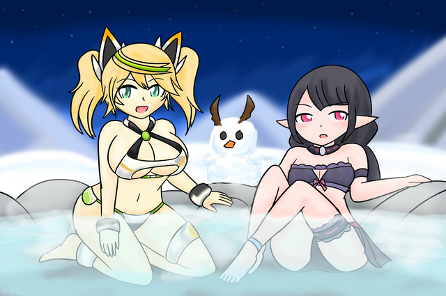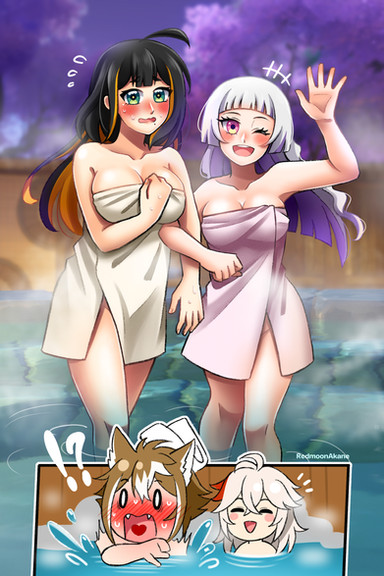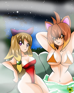 #fanart #originalcharacter #alba #commission #girls #glasses #moon #onsen #towels #enerva #marshmallowskies #feistychuweenie #rinavermilion #vamp_ch