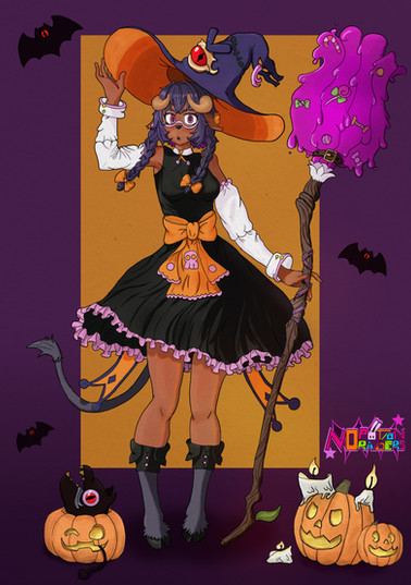 #digitalart #fanart #witch #boots #food #glasses #gloves #hat #heterochromia #meganekko #nekomimi #thighhighs #thighs #videogame #ffxiv #finalfantasyxiv #miqote #whitepeachgarden