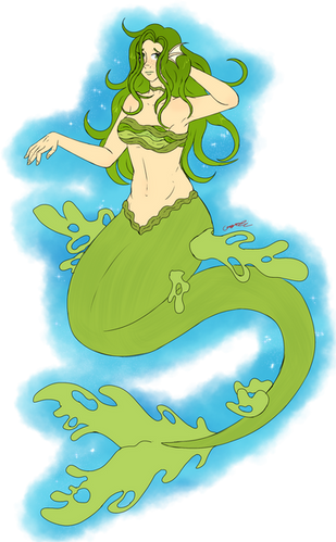 #commission #greenhair #mermaid #monstergirl #serenity #topless