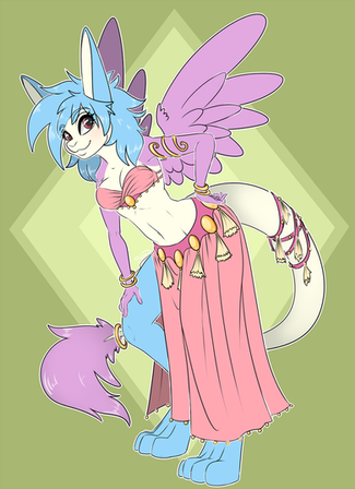 #anthro #blueeyes #commission #fluffy #fur #furry #outfit #pinkhair #shortcake #snowflakes #tail