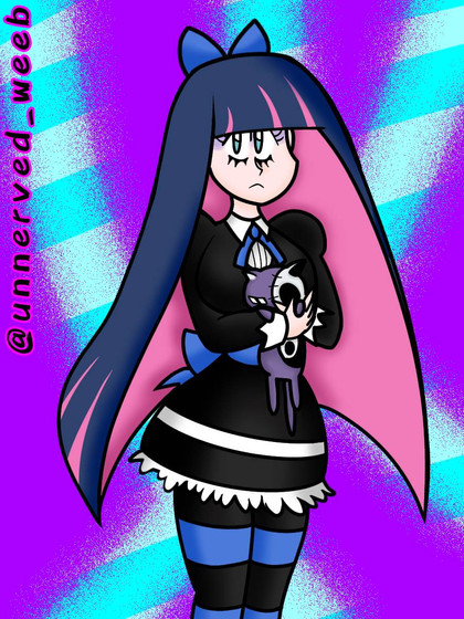 #bangs #bluepinkhair #bow #gothlolita #stocking #stripedstockings #pantyandstockingwithgarterbelt