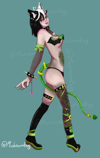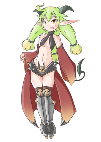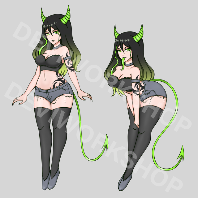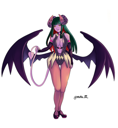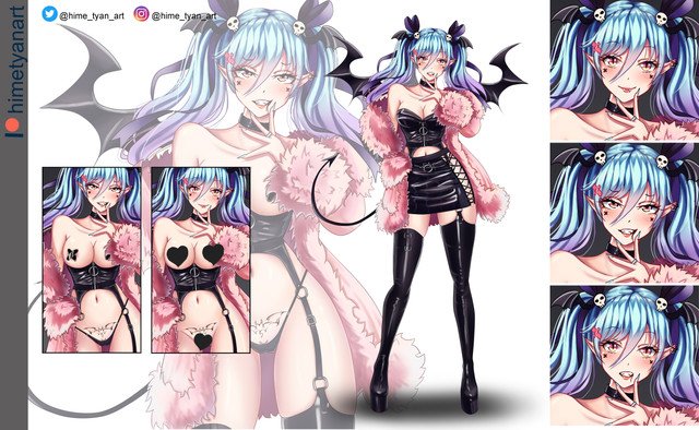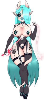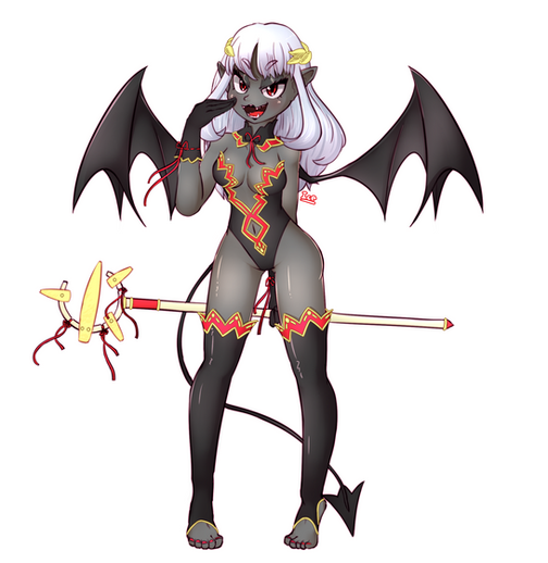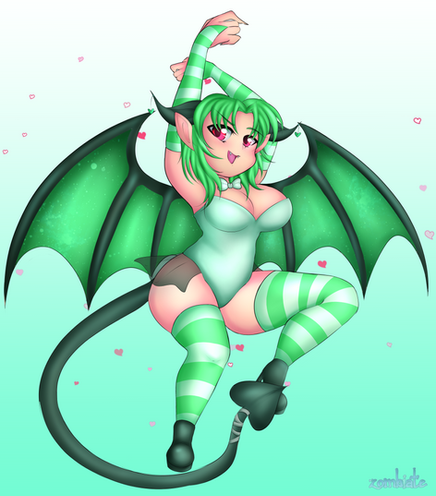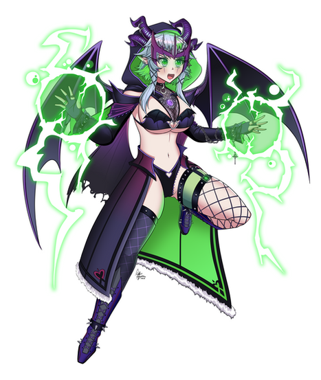 I worked on this one a while ago, too! Even though I don't play it or have any intention of doing so, she's got a very cute design. I might be biased because of those glasses she wears.Anyways, here she is depicted as a succubus! Still timid, just like me. There is an alternate version of her over on my Patreon!