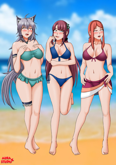#5girls #beach #commission #mineriko #sanseimuramasa #onoharamikage #alba #swimsuits #blushinggirl #louisefrancoiseleblancdelavalliere