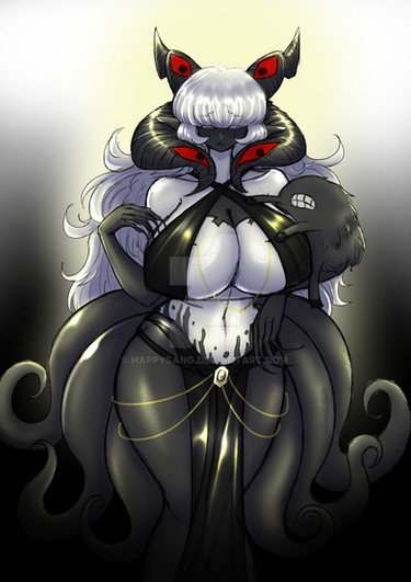 #demongirl #digitalart #originalcharacter #cleavage #dress #eyepatch #gloves #horns #lips #monstergirl #oc #stockings #succubus #tentacles #thighs #tummy #vtuber #viperlilium