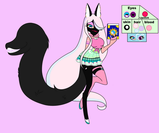 Depending on her mood, the fluorescent bits will change color. She is a bit shy, but tries hard to speak up. Since she has bad vision but only one eye, Viper has a monocle! It is attached to her choker because she is rather clumsy and may drop it.