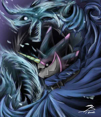 "I... I've never felt this kind of power before."I'm not sure if Beelzemon is terrified of his power or infatuated with it.