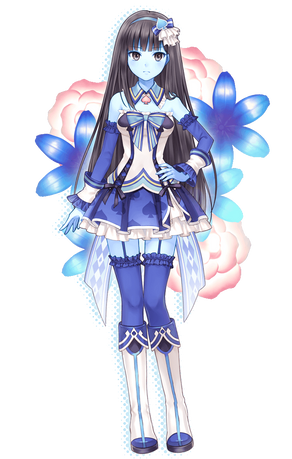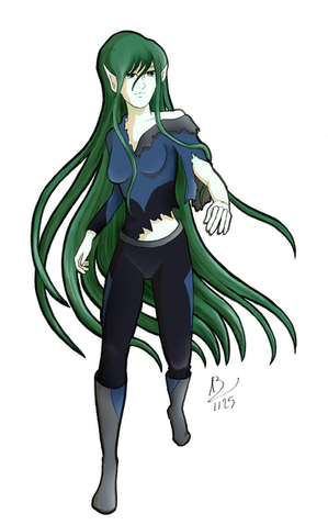 #anime #big #blue #blueskin #eyes #fantasy #green #hair #highschool #japanese #longears #longhair #marina #mermaid #painting #plaidskirt #ribbon #wavy #commission