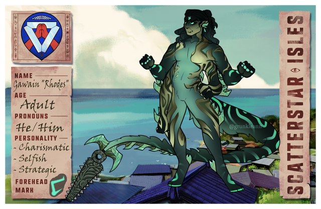 Giall, or 'Jaws', an Undyre Medic, has been working under Dr. 'Bow' Widogast for multiple years. Together they've researched auric conditions and have been working on the development of synthetic beads. With the reuniting of the mainland and Tonpelli making synthetic beads may not seem as necessary- but there are various costs and efficiencies that could be reasoned towards getting a synthetic one... Or so he reasons.