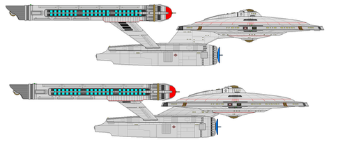 Type A-Refit: 22 decks, reworked Mk8 engine (warp 8), 430 crewmen