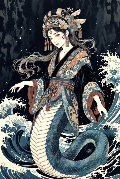 The name "Shuimu" itself carries symbolic meaning in Mandarin, with "Shui" representing 'water,' "mu" translating to 'mother,' and "niangniang" potentially denoting a goddess. Other epithets attributed to Shuimu include The Old Mother of Waters, Fountain Goddess, and Sea Goddess, further emphasizing her association with water and its elemental power.