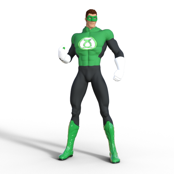 The reflections on the suit are part of CarPaint (the reflection depth and fresnel can be tweaked). The reflections on the ground are part of the Glossy shader. I believe this shader has a sort of fresnel quality when lowered.