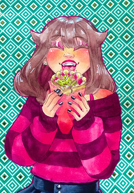 #fanart #cartoon #artwork #asian #blue #cat #clothed #couple #cute #demon #digital #dressed #fangs #female #food #girl #human #hunters #illustration #korean #kpop #movie #sfw #smile #sweet #tongue #woman #art #kpopdemonhunters