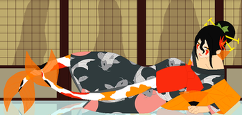XD Nishiki doesn't really like shoes or pants, so he wears a dress, but if he had to wear shoes he would wear some sandals. He will bundle up when it gets cold though. Koi Fish don't really like the cold. Though he doesn't like it to be very hot either.