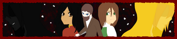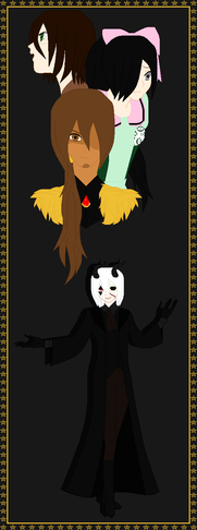 The other girl looked a bit older than her. She had brown skin and dark hair held in a messy ponytail by a black ribbon. She wore an elegant brown dress with black strings decorating it, some black opera gloves and a choker, and had black ballerina flats with one leg having long black ribbons circling it. Her eyes were gray, and lacked pupils, she didn't really seem to be looking anywhere and mainly seemed to only be listening. It was clear she was blind.