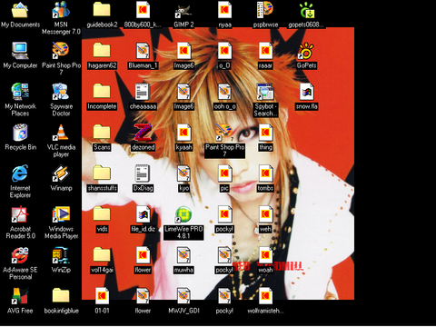 I really like the hair~ And the hand. *weirdo* The "crests" - don't ask me what they're supposed to be called, the best I can come up with are "logos" - probably would've looked neater if there'd only been one, but, well, that's just me.