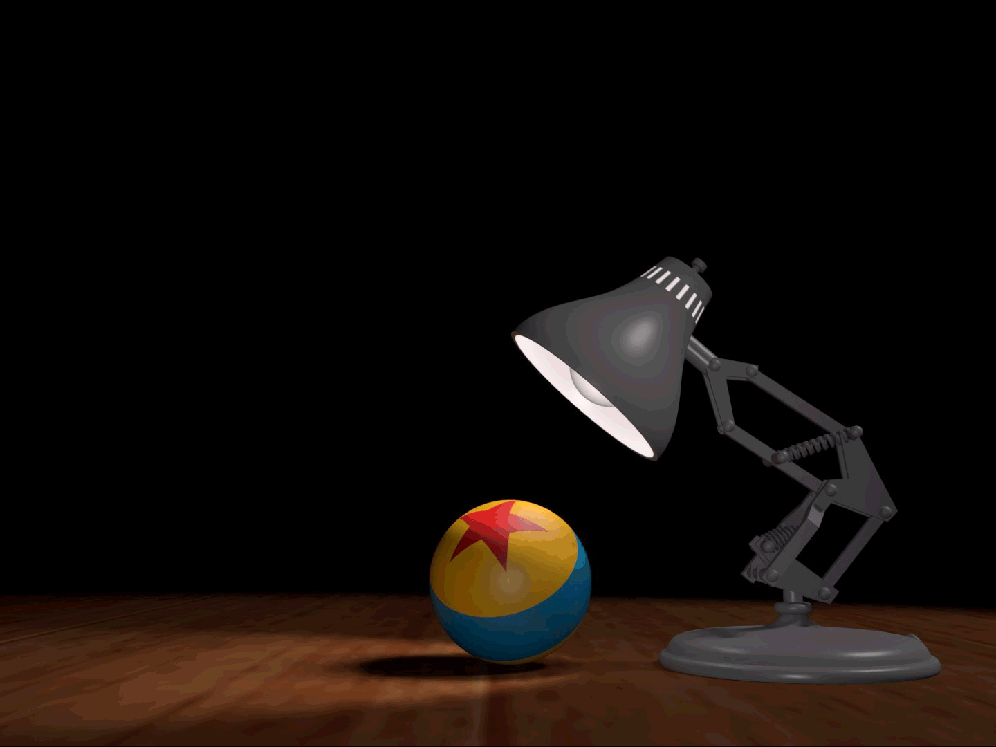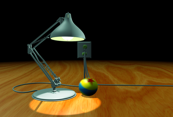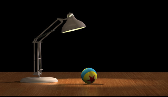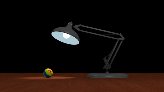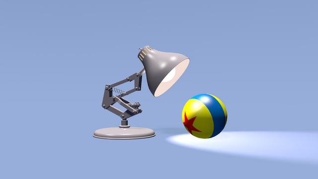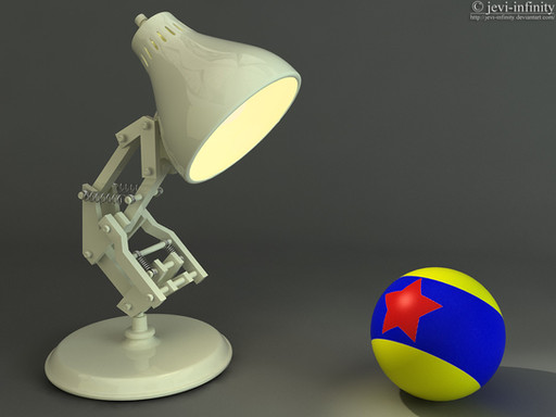 This is a recreation of “Luxo Jr.”, PIXAR Animation Studios first short film featured along side their first feature film, “Toy Story”.Luxo jr. is curiously looking at what I call, for lack of a better name, The PIXAR Ball.
