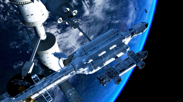 This is a recreation of a scene from season 6 of Stargate SG-1, "Prometheus". In this episode the X-303 was stolen from a secret USAF dry dock.