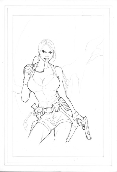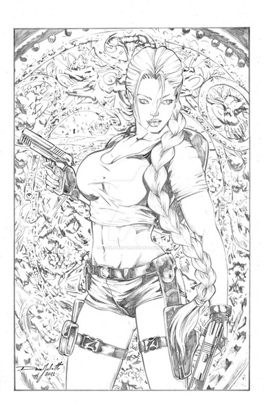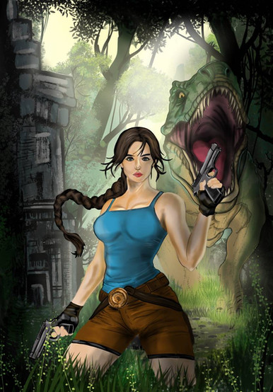 That looks just incredible, I almost can't believe the T-rex was a pencil drawing and Lara herself looks amazing too.