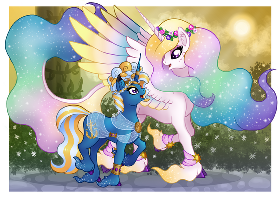 Wanted to make something for Celestia day (the solstice) since she's my favorite character and I'm a day late but whos counting lolCelestia is the oldest living alicorn in Equestira, while Sterling Harmony is the youngest. As an alicorn from the royal line, Sterling Harmony was, and still is, mentored by the princesses, but Celesta is her favorite. They spend the most time together out of the other princesses, well besides her mother, of course. Momma Twi doesn't mind she's not the favorite princess, actually, she finds it endearing that Sterling is just like her when she was young.