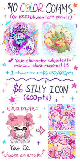 My commissions are now officially open! Technically they already were, but I haven't actually promoted them for years hahaI'm open for commssions for any kind of art I do! This includes digital art, character design (ponies!), pixel art (that has been a fan favorite in the past), animations, cross stitch pieces, sculptures, stamps, felt art pieces, perler bead pieces, and even things like small games and pokemon romhacks!