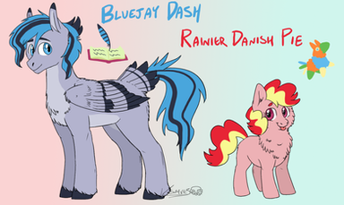 Rainbow Dash and Fluttershy were always close, ever since fillyhood. Fluttershy had always looked up to Rainbow, being able to stand up for the both of them, and she wished to have that confidence. Of course Flutters had grown up and learned that (slowly). Shy and Dash always had a history as friends, but it wasn't until their big adventures were over they were able to really settle down, and would constantly go through past memories. Fluttershy helped Rainbow slow down, appreciate a less action filled life, and "smell the roses". They were the first two to get together (before the herd), and thus, Feathermay was the first to be born.