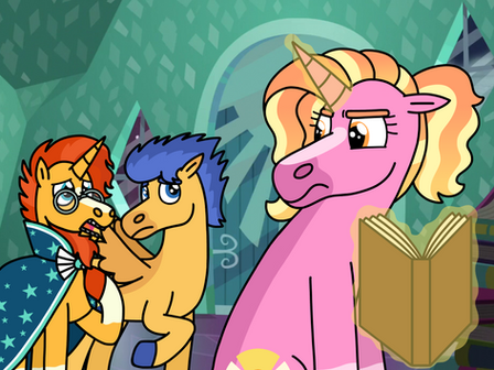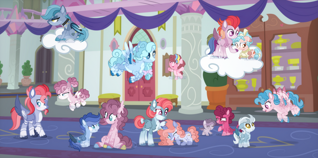 "Hiya!" The blue unicorn next to her started. She finally got to get a good look at them. There were two... unicorns, connected to one body? They both had horns... somewhat, and there was a wing... was this.. "My name's Sweetie Blue!" Snowcatcher didn't get to finish thinking before the unicorn started talking again. "And this-" Sweetie lifted her hoof up to point, but quickly placed it back as she lost balance. "This is my sib Sprinkle Stripe! Most ponies like to call us the Sweetie Cakes." She turned to look at the pony next to her, "And this is my sis Cupcake!" The unicorns, were all staring down at her. "What's your name?" She cowered in their presence. "Snowcatcher." Blue nodded and smiled in reply. "Nice to meet you! Hey, I love your scales! Where do you come from?" Snowcatcher just gave another simple reply. "Um.. Manehatten." "Oh, Manehatten! I know that place! I've been there quite a bit! I know a pony there, well maybe she's not really a pony, her name's Flitterheart and she..." Blue continued, but Snowcatcher began to notice the other conversations dying down. The three at the front stood looking onto the crowd, waiting to continue their presentation. "...But other than that I don't leave home very often! I'm living with my family here in Ponyville! I'm with the Cakes..." Why was she still talking? Everyone else already stopped, why is she still talking!? She saw Storm looking at her out of the corner of her eye. The other creatures were looking at them too. She cowered into herself. Why are you still talking? Stop talking! Everyone is looking at us! Why-