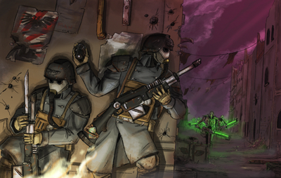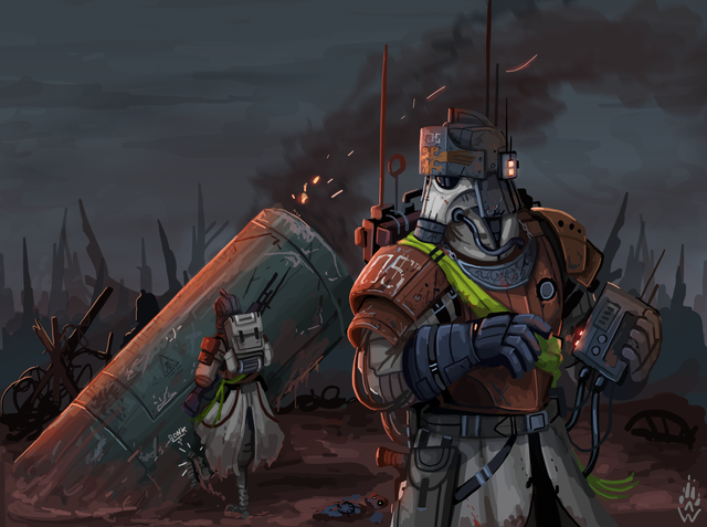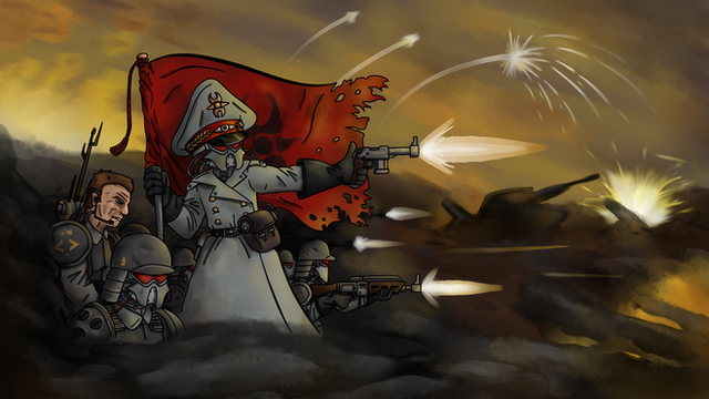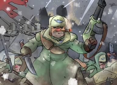Okey, so one week ago i bought graphical tablet, and started draw.This is my third picture. It's like Red Alert 2 fan art. Conscript and flak trooper ready to serve the Motherland.Related content