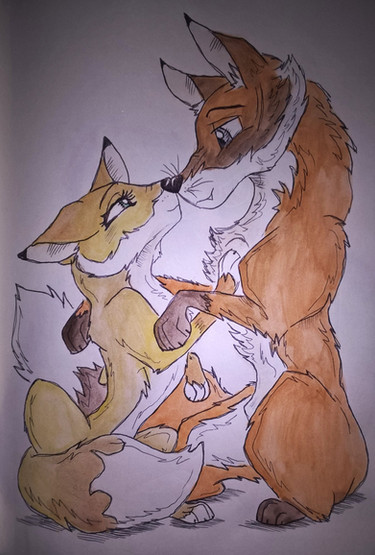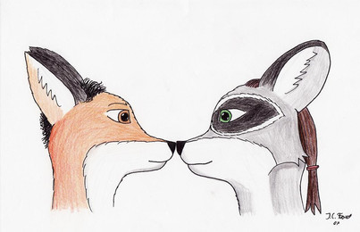 The colouring is so bold and solid which is quite astounding for coloured pencils. The lines, the shading... all so smooth and it's just so warm and gorgeous overall. It's a shame the scan didn't work out... shadows drive me mad BUT in this case I really don't care as at least one is able to see the true potential of the colours and colouring! Hehe, those eyes. You're always so clear with the emotion in characters.