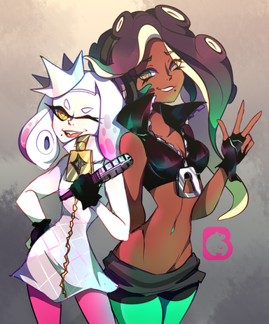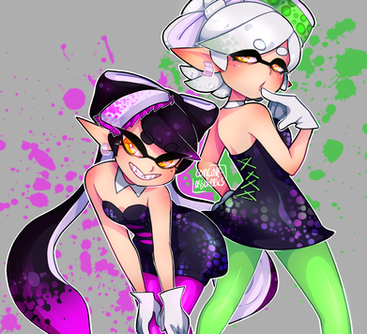 click the link lmao its marina and pearl from splatoon 2 theyre like... idols and they do news and host that splatfest business i think?? idk i dont play the game i just... really like the characters.......