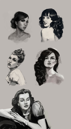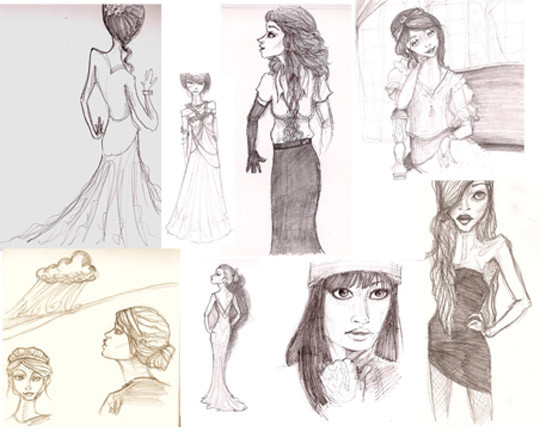Oooh, lovely sketches! Very interesting to see her in your style! I love the middle left one and the bow in her portrait at the bottom xD