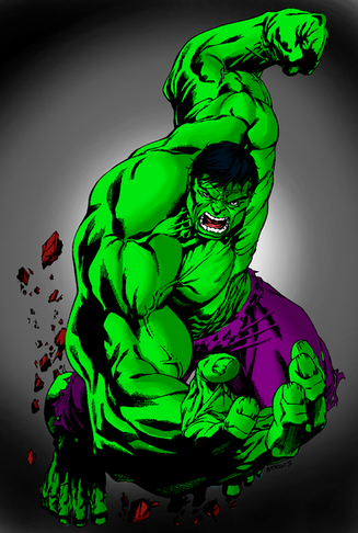 Here is the finished piece of the Hulk my friend wanted me to draw. I love the way it turned out. Pencils, inks and coloring all done by me.Peace.
