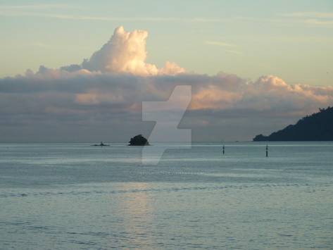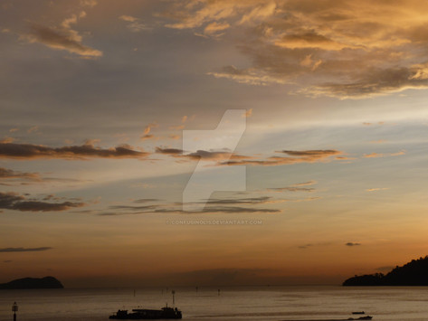 i like the colorful clouds and the dark shilouette of the island very beautiful