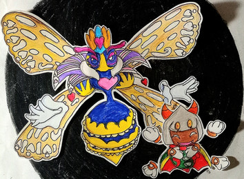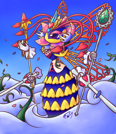 The yellow guy is my take on the "Lord Antr" enemy summoned during... uh, one of the Sectonia fights. I thought that having the blade thing growing directly out of their heads would be extremely inconvenient in their everyday life, so I gave him a helmet instead. Leave it to me to overthink these things.