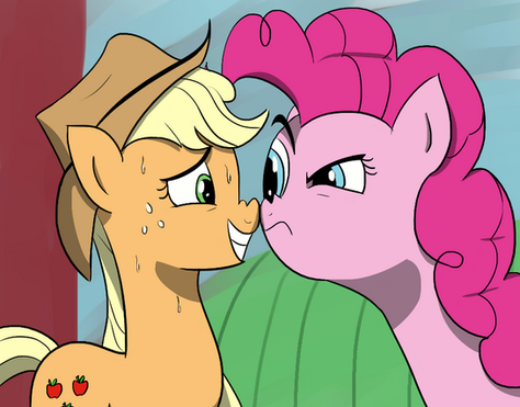 Applejack never had a chance. You just don't lie to Pinkie Pie.This is a request done for one of NoOneBahtim's cards in her set called "Transparency".