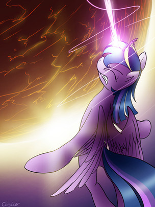 Before Twilight could answer, the gates of the chamber slammed open, and Crystal ponies guards and attendents scampered out of the way as a VERY angry Alicorn stormed into the room. The very air became hot as the pink-rainbow mane and tail burst into searing flames of red-hot rage.